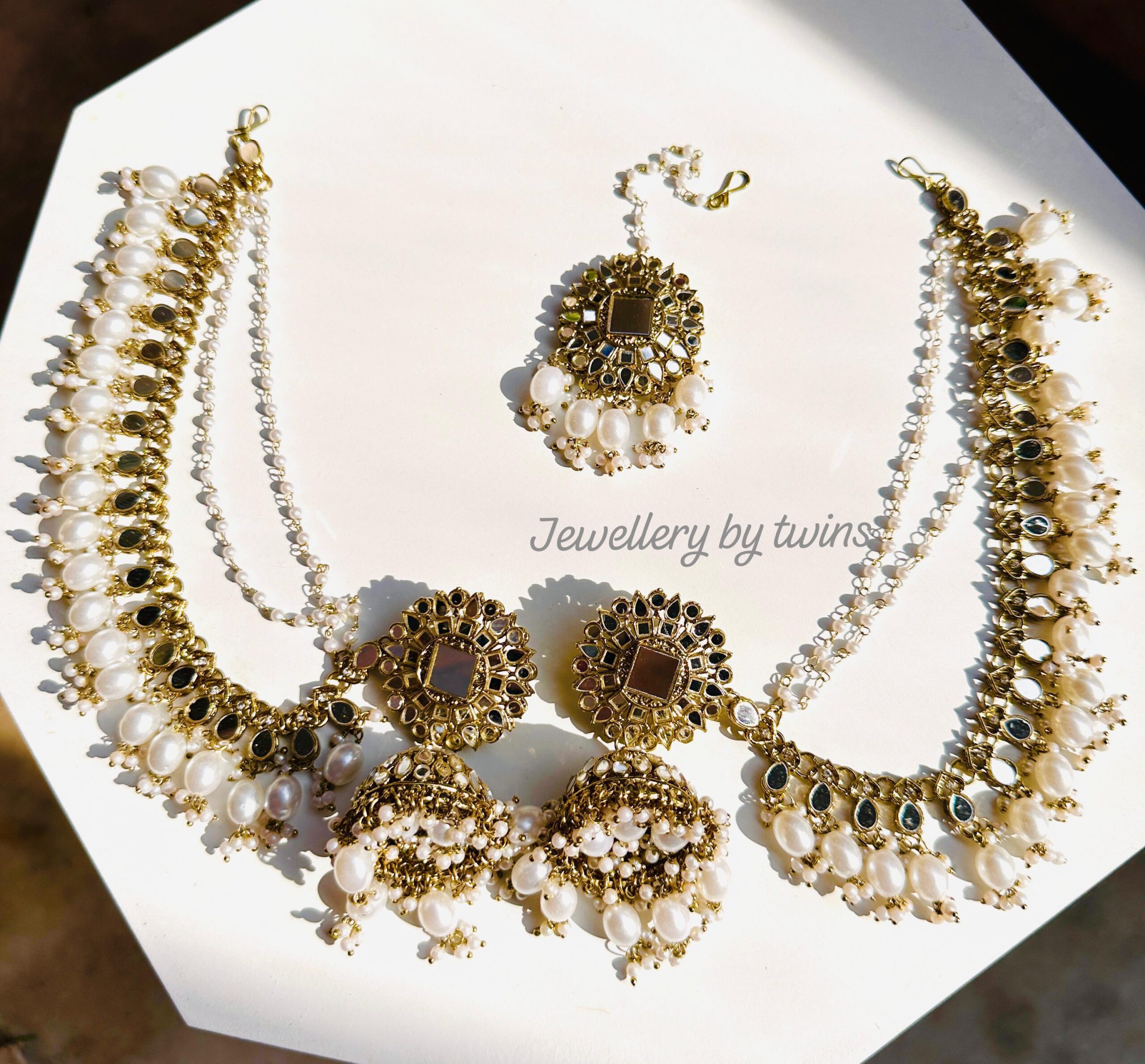 Be the first to review “JBT Pakistani mirror jhumkas with hair chain”