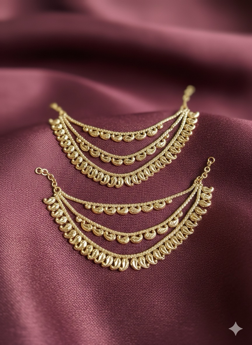 This leaf style ear chain is plated with antique gold to match your traditional vintage attire.