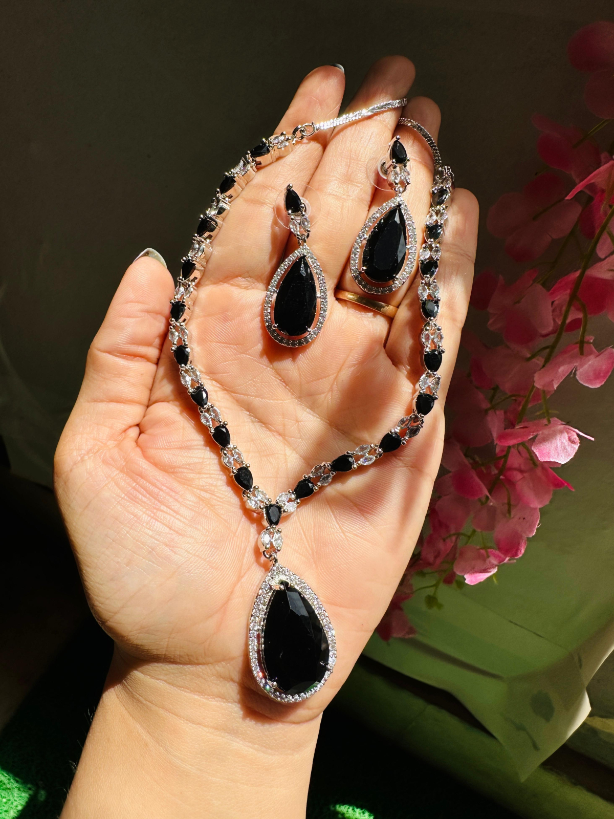 JBT Sara Ali Khan American diamond drop necklace set